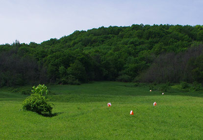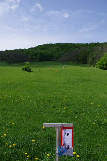 Na karti natjecatelj vidi samo jednu kružnicu koja označava neko obilježje na terenu, a na terenu se nalazi jedna ili više zastavica - A,B,C,D,E,(F).